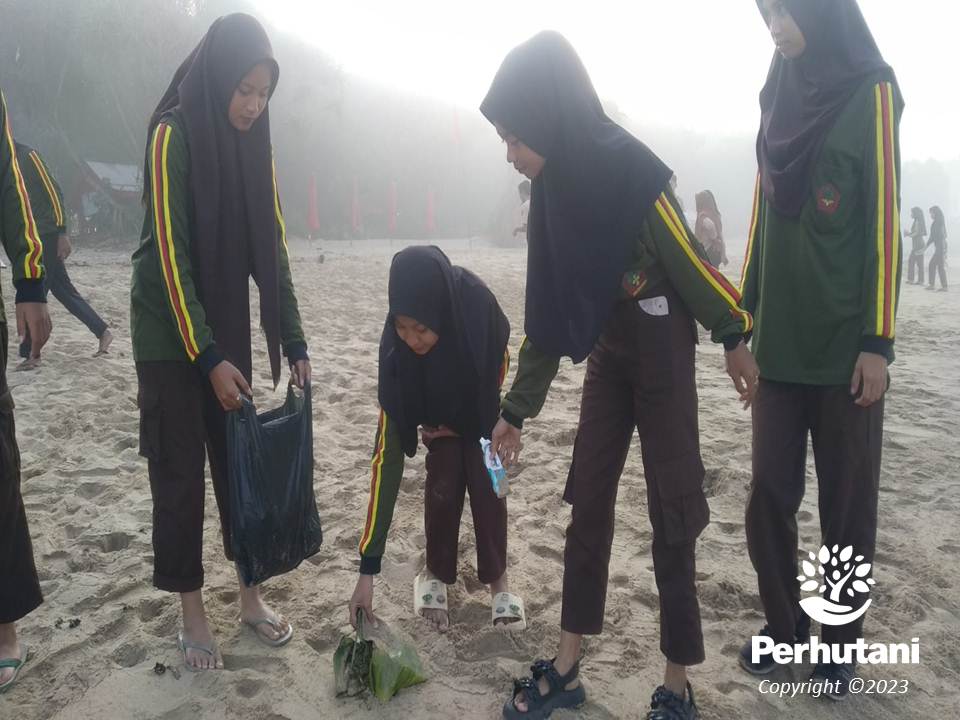 Perhutani Ajak Pramuka Saka Wanabakti Peduli Lingkungan Gelar Bakti Sosial Bersih-bersih Pantai di Banyuwangi