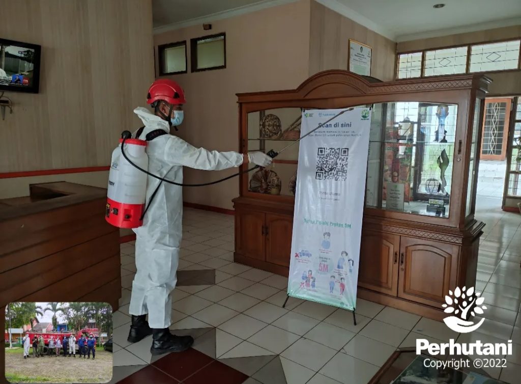 CEGAH PENYEBARAN COVID 19 PERHUTANI BERSAMA DISDAMKAR LAKUKAN PENYEMPROTAN DISINFEKTAN.
