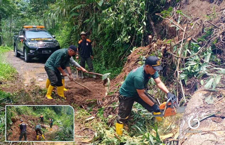 Perhutani Bersama Masyarakat Bersihkan Material Longsor di Tasikmalaya