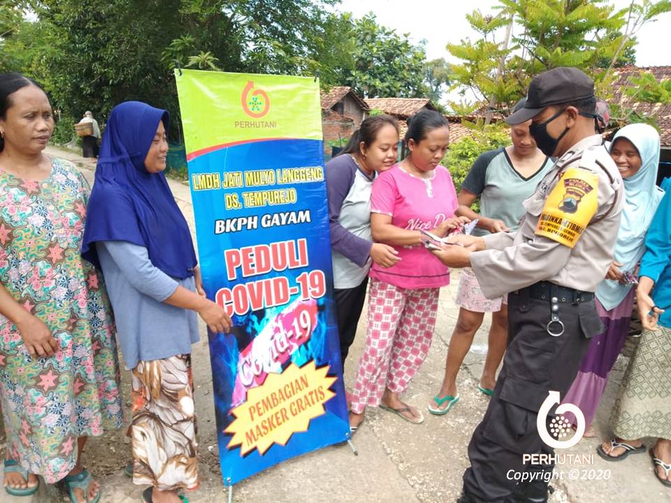 Perhutani Bersama Stakeholder Bogorejo Blora Bagikan Masker Cegah Penyebaran Covid-19