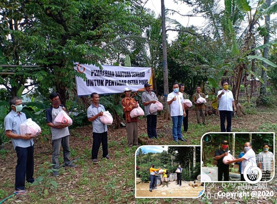 Perhutani Bagikan Sembako Kepada Penyadap Getah Pinus di Madiun