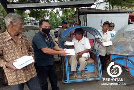 Perhutani Bagikan Sembako Kepada Warga Pelaku Wisata Yang Terdampak Covid-19 di Batu, Malang