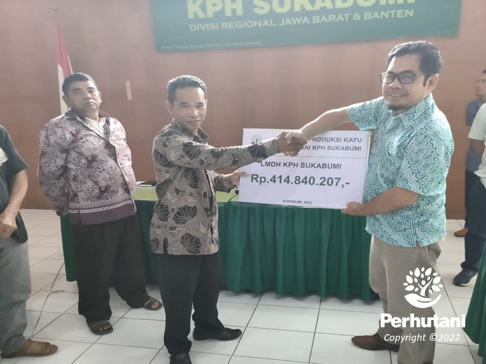 Perhutani Serahkan Hasil Sharing Produksi Kayu Kepada LMDH di Sukabumi