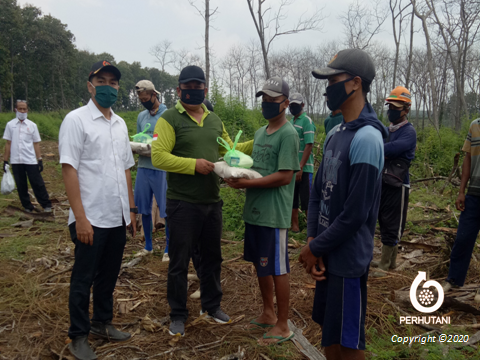 Perhutani Bagikan Sembako dan Masker Bagi Pekerja Produksi Hutan Randublatung