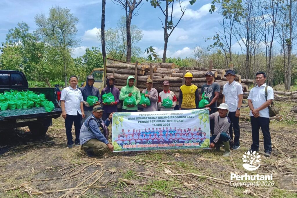 Perhutani Ngawi Bagikan Paket Lebaran bagi Tenaga Kerja Tebangan Kayu