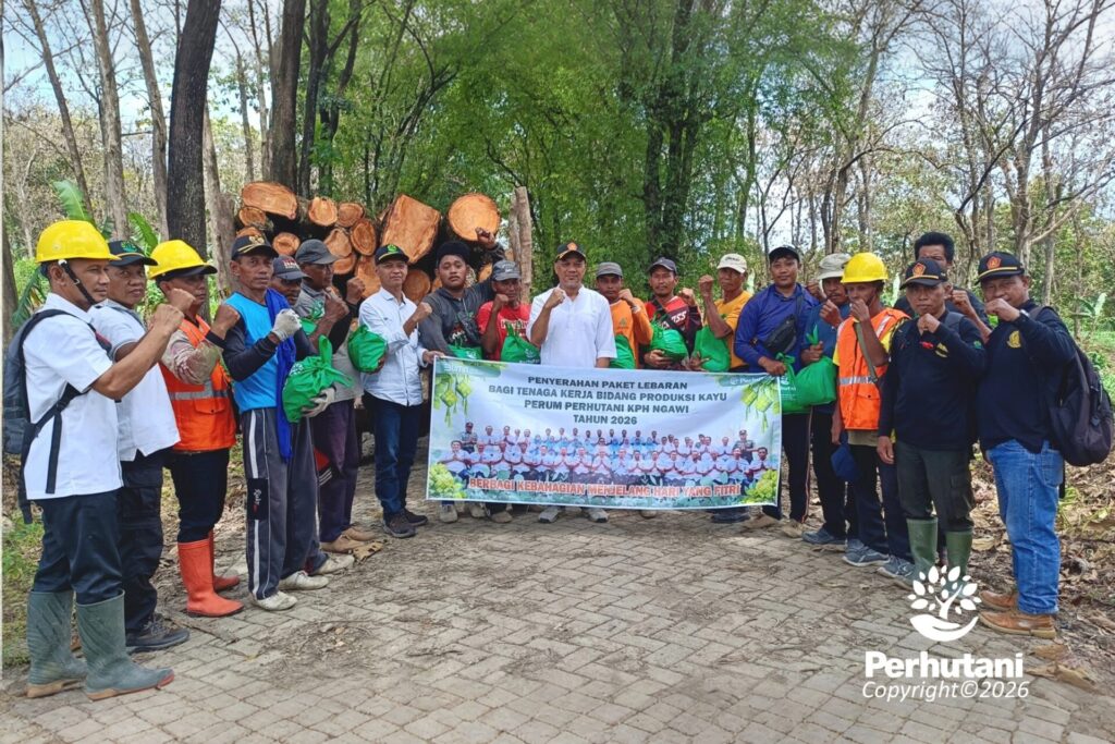 Perhutani KPH Ngawi Salurkan Paket Lebaran untuk Ratusan Tenaga Kerja Tebangan Kayu