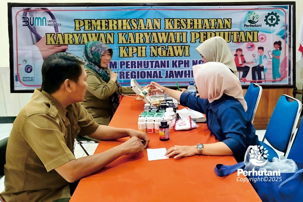 Peduli Kesehatan Karyawan, Perhutani Ngawi dan Kimia Farma Gelar Cek Kesehatan Gratis