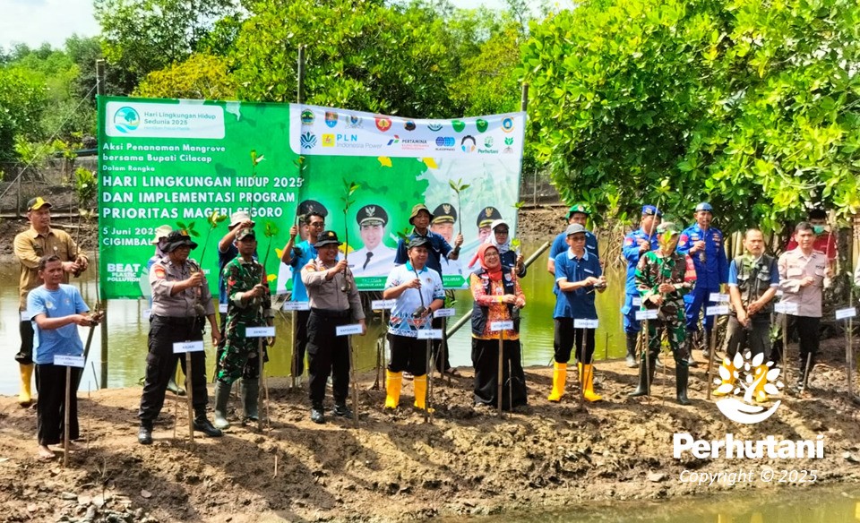 Perhutani Tanam Ratusan Bibit Mangrove Bersama Dinas Lingkungan Hidup Cilacap