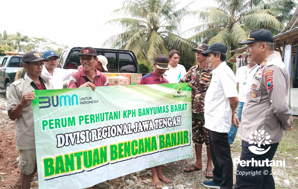 Perhutani Serahkan Bantuan Sembako bagi Korban Bencana Alam Banjir di Binangun Cilacap