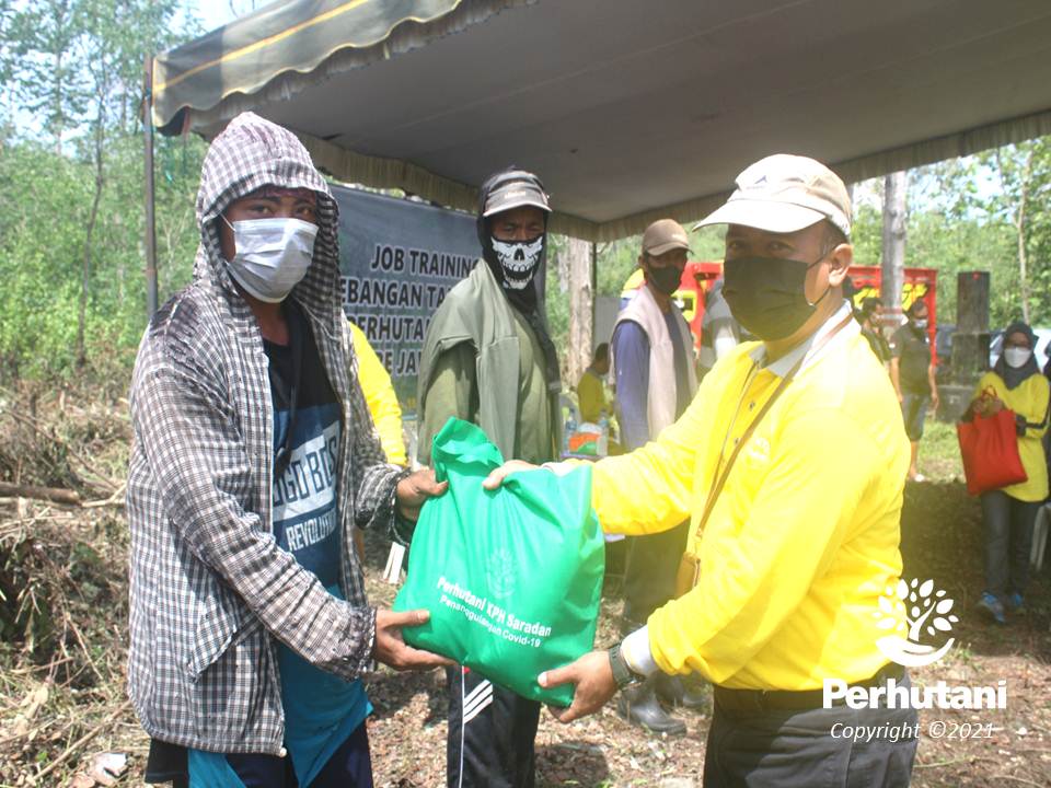 Perhutani Berikan Bantuan Sembako Kepada Tenaga Tebangan di Saradan