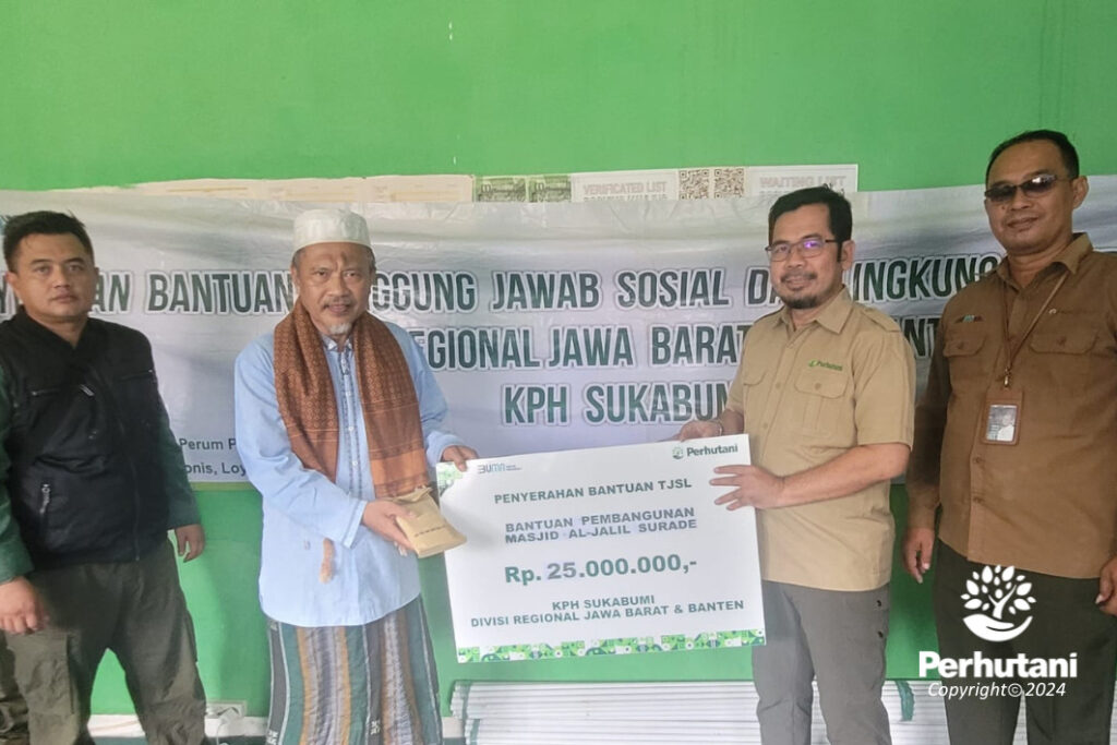 Perhutani Salurkan Bantuan TJSL Pembangunan Masjid Al-Jalil Surade di Sukabumi
