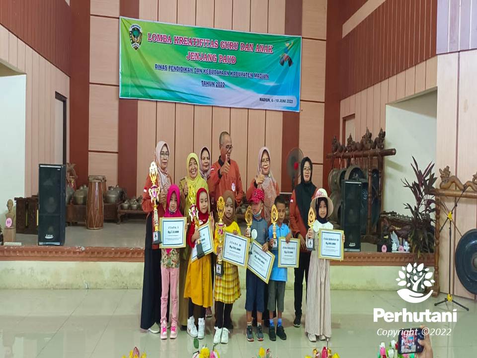 SARADAN, PERHUTANI (10/6/2022) | TK Tunas Rimba I Saradan yang diwakili oleh Synala Keshwari Nur Sadewo meraih juara I di tingkat Kabupaten Madiun pada lomba cerita pengalaman anak pada peringatan hari Anak Nasional (HAN) yang digelar oleh Dinas Pendidikan dan Kebudayaan Kabupaten Madiun, Kamis (09/06).
