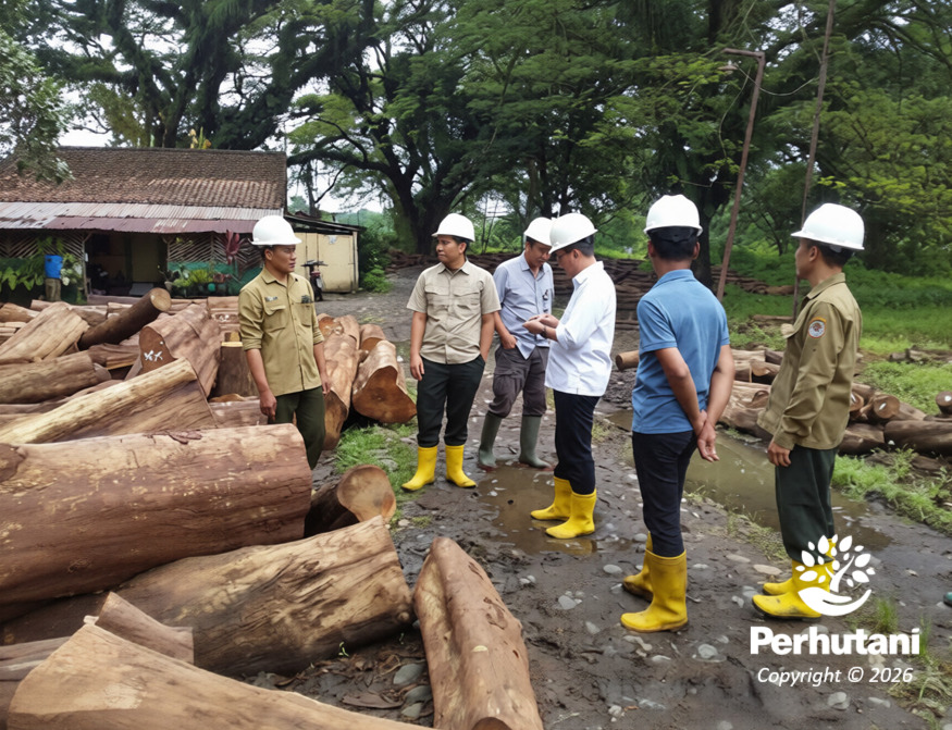KENDAL, PERHUTANI (13/02/2026) | Perhutani Kesatuan Pemangkuan Hutan (KPH) Kendal mendampingi jajaran Direktorat Komersial dalam kegiatan pengecekan penjualan kayu di TPK Subah, KPH Kendal, Divisi Regional Jawa Tengah, Jumat (13/02).