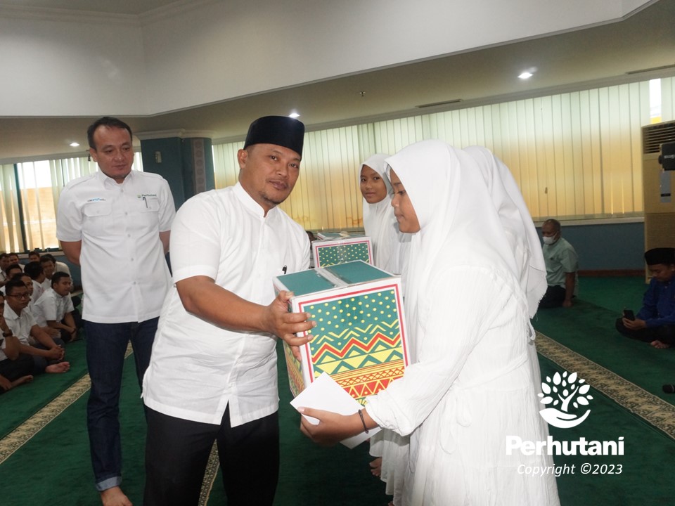 SURABAYA, PERHUTANI (29/03/2023) | Peringatan Hari Ulang Tahun (HUT)  Perhutani ke-62 di Kantor Divisi Regional (Divre) Jawa Timur (Jatim) diselenggarakan dalam kesederhanaan, dengan menggandeng Takmir Masjid Asy-syajarah, menggelar doa bersama dan memberikan santunan kepada sejumlah anak yatim-piatu dari Yayasan Anak Yatim Piatu Ar-Ruqoiyyah Peneleh-Surabaya yang tidak disebutkan nominalnya, yang dilaksanakan di Graha Perhutani Divre Jatim Rabu, (29/03).