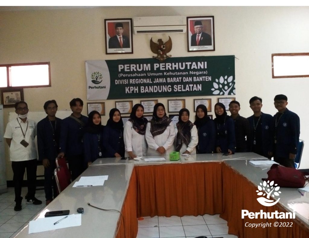 BANDUNG, PERHUTANI (11/07/2022) | Perhutani Kesatuan Pemangkuan Hutan (KPH) Bandung Selatan menjadi tempat Praktek Lapangan Kehutanan (PLK) mahasiswa Fakultas Kehutanan Institut Pertanian Bogor (IPB). Mahasiswa diterima di aula kantor Perhutani Bandung Selatan oleh Kepala Seksi Madya Pengelolaan Sumber Daya Hutan dan Perhutanan Sosial (Kasi PSDH dan PS), Nani Suwarni mewakili Administratur KPH Bandung Selatan Arif Marghana didampingi Kepala Seksi Madya Perencanaan dan Pengembangan Bisnis (Kasi PPB). Senin (11/07).