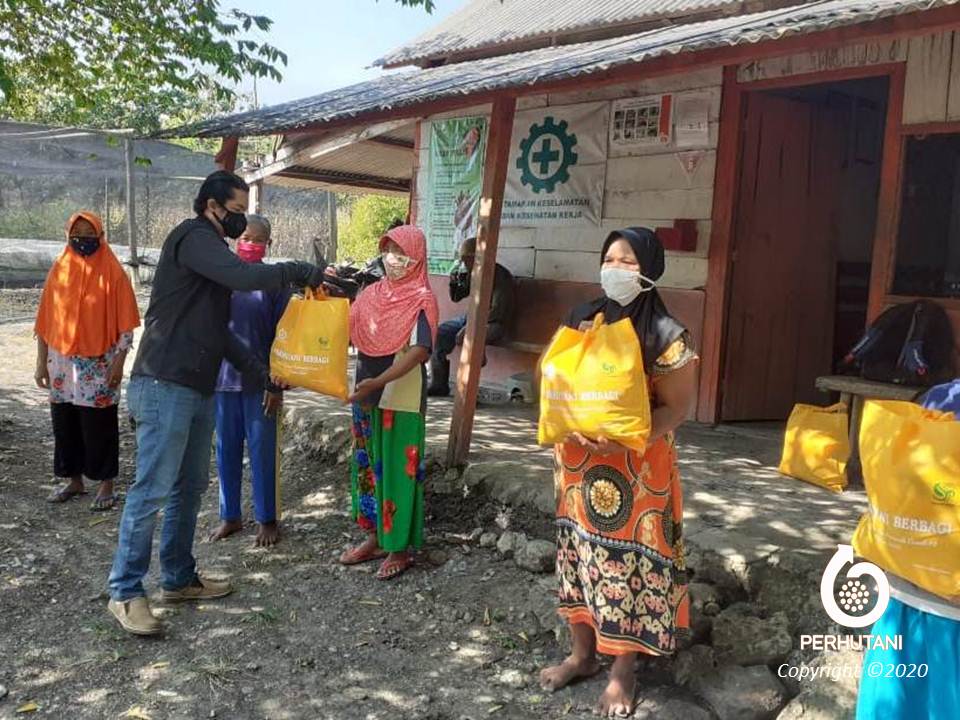 Paket sembako terdiri dari 5 kg beras premium, gula pasir 1 kg, minyak goreng 2 liter dan tepung terigu 1 kg diserahkan oleh Administratur KPH Saradan, Noor Rochman yang diwakili oleh Asisten Perhutani (Asper) Bagian Kesatuan Pemangkuan Hutan (BKPH) Notopuro, Nor Ivansyah di depan kantor BKPH Nopuro pada Kamis (08/07). Kegiatan Bantuan Sosial yang dilakukan oleh IIK-Perhutani ini bertujuan untuk membantu masyarakat yang bekerja sabagai mitra kerja Perhutani dalam pengelolaan sumberdaya hutan, yang saat ini terdampak pendemi Covid-19.
