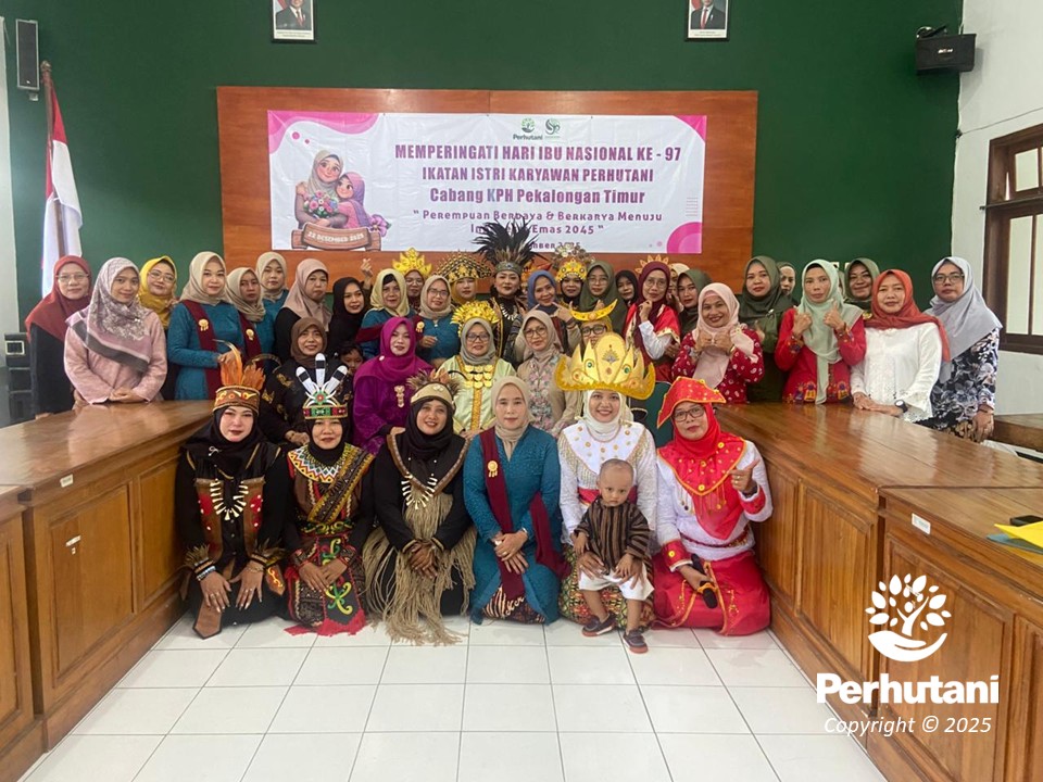 PEKALONGAN TIMUR, PERHUTANI, (23/12/2025)│ Semangat nasionalisme dan pelestarian budaya mewarnai peringatan Hari Ibu ke-97 di lingkungan Perhutani Kesatuan Pemangkuan Hutan (KPH) Pekalongan Timur. Mengusung tema kebhinekaan, Ikatan Istri Karyawan (IIK) Perhutani menggelar aksi budaya dengan mengenakan beragam pakaian adat daerah dari seluruh penjuru Nusantara, Senin (22/12).
