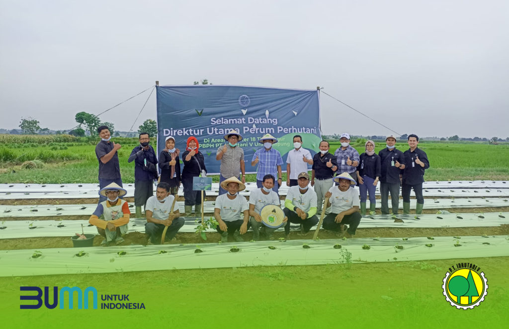 LAMPUNG, INHUTANI V (29/01/2022) I Dalam rangka mendukung program perhutanan sosial serta multi usaha kehutanan, PT Inhutani V menerima kunjungan kerja Direktur Utama Perum Perhutani Wahyu Kuncoro di areal kemitraan kehutanan Inhutani V Unit Lampung di areal garapan KTH Wonomulo Register 18 pada Sabtu (29/01).