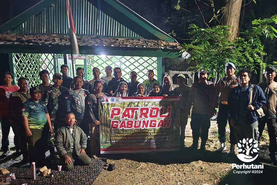 MOJOKERTO, PERHUTANI (16/07/2024) | Perum Perhutani Kesatuan Pemangkuan Hutan (KPH) Mojokerto bersama Koramil Sambeng, Polsek Sambeng, dan Forkopimcam Sambeng, Kabupaten Lamongan, melakukan patroli gabungan di wilayah Bagian Kesatuan Pemangkuan Hutan (BKPH) Mantup, KPH Mojokerto pada Senin malam (15/07).