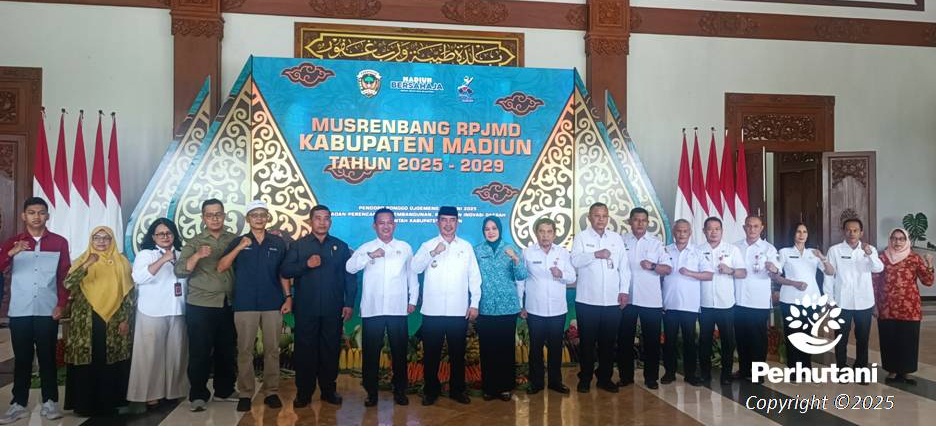 LAWU DS., PERHUTANI (11/06/2025) | Perhutani Kesatuan Pemangkuan Hutan (KPH) Lawu Ds turut berperan aktif dalam penyusunan Rencana Pembangunan Jangka Menengah Daerah (RPJMD) Kabupaten Madiun, Kegiatan dilaksanakan  bertempat di Pendopo Ronggo Djoemeno Jalan Alun-Alun Utara Nomor 3 Caruban, Kabupaten Madiun pada Rabu (11/06).