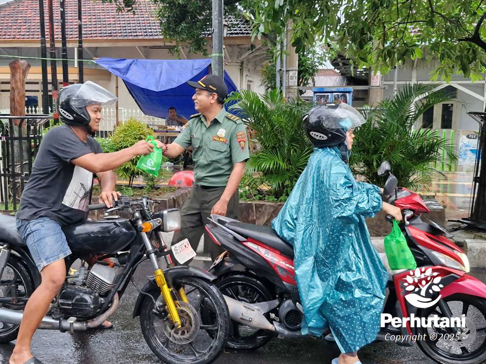 NGAWI, PERHUTANI (8/3/2025) | Menjelang waktu berbuka puasa, puluhan karyawan Perhutani Kesatuan Pemangkuan Hutan (KPH) Ngawi membagikan ratusan paket takjil berisi makanan ringan dan air mineral kepada pengendara motor, mobil, serta warga yang melintas di depan kantor KPH Ngawi, pada Jumat (7/3).
