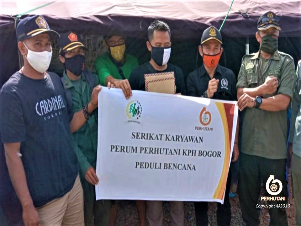BOGOR, PERHUTANI (23/05/2020) | Karyawan dan karyawati Perhutani Kesatuan Pemangkuan Hutan (KPH) Bogor Peduli Bencana yang diwakili oleh Ade Soma selaku Ketua Sekar (Serikat Karyawan) KPH Bogor menyerahkan bantuan berupa uang tunai sebanyak Rp.6.645.000,- untuk meringankan beban warga korban tanah longsor di kampung Sruduk Desa Wangunjaya Kecamatan Leuwisadeng Kabupaten Bogor, Sabtu (23/04).