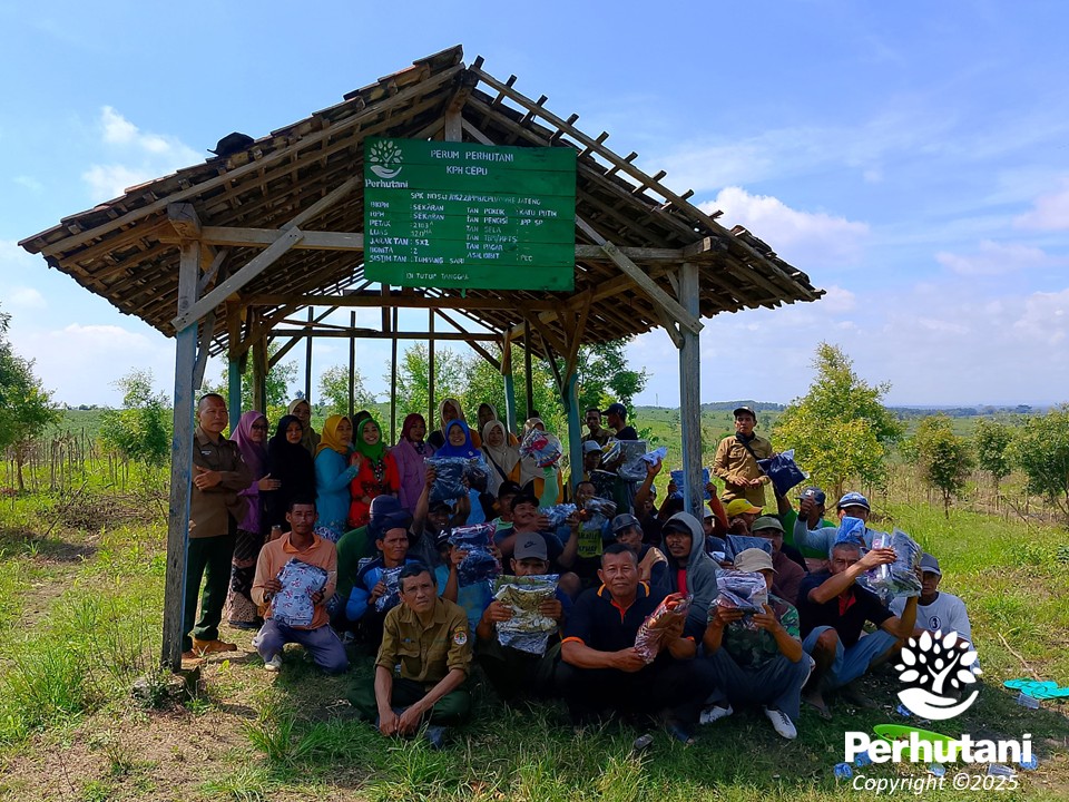 CEPU, PERHUTANI (22/04/2025) | Peringati Hari Kartini, Perum Perhutani Kesatuan Pemangkuan Hutan (KPH) Cepu bersama Ikatan Istri Karyawan Perhutani (IIKP) Cabang Cepu memberikan bingkisan pakaian kepada para pesanggem dan pekerja persemaian Sekepyar di gubuk tanaman petak 2103A Resort Pemangkuan Hutan (RPH) Sekaran, Bagian Kesatuan Pemangkuan Hutan (BKPH) Sekaran, Selasa (22/04).