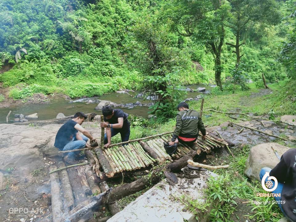 BANDUNG UTARA, PERHUTANI (01/02/2020) | Dalam rangka mengembangkan potensi wisata, Perhutani Bagian Kesatuan Pemangkuan Hutan (BKPH) Lembang bersama Lembaga Masyarakat Desa Hutan (LMDH) Kertawangi bergotong royong melakukan renovasi pada wana wisata Curug Layung, Jum’at (31/1).