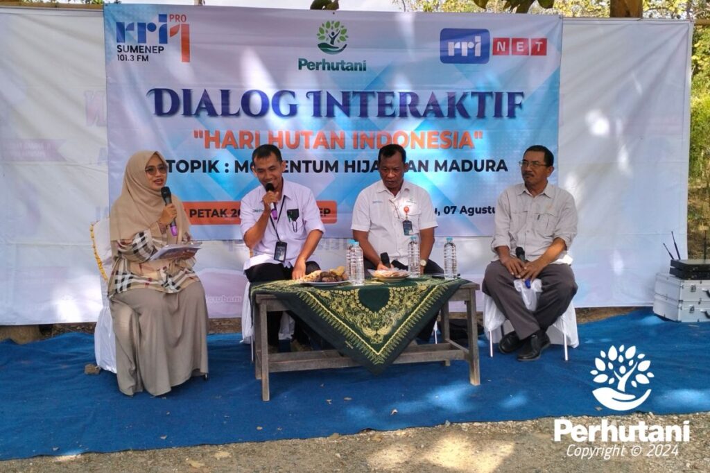 MADURA, PERHUTANI (07/08/2024) | Dalam Rangka Hari Hutan Indonesia diselenggarakan Dialog Interaktif di Radio Republik Indonesia (RRI) Pro 1 Sumenep, dengan topik “Momentum Hijaukan Madura” yang menghadirkan narasumber dari Perhutani Kesatuan Pemangkuan Hutan (KPH) Madura dan Organization for Industrial, Spiritual and Cultural Advancement (OISCA) Madura. Kegiatan berlangsung di Petak 20 wilayah Bagian Kesatuan Pemangkuan Hutan (BKPH) Madura Timur, Resort Pemangkuan Hutan (RPH) Sumenep. Rabu, (07/08).