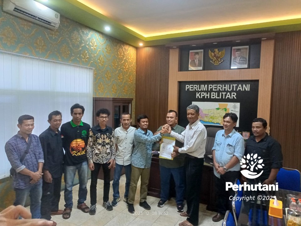 BLITAR, PERHUTANI (09/12/2023) | Guna meningkatkan pelayanan di area Wana Wisata Pendakian Gunung Kelud, Perum Perhutani Kesatuan Pemangkuan Hutan (KPH) Blitar menggandeng investor PT Manggala Teknologi Nusantara (MTN) perusahaan yang bergerak menyediakan aplikasi layanan E-ticketing, penandatanganan kerjasama ini dilaksanakan di Aula Kantor Perum Perhutani Blitar pada Sabtu (09/12).