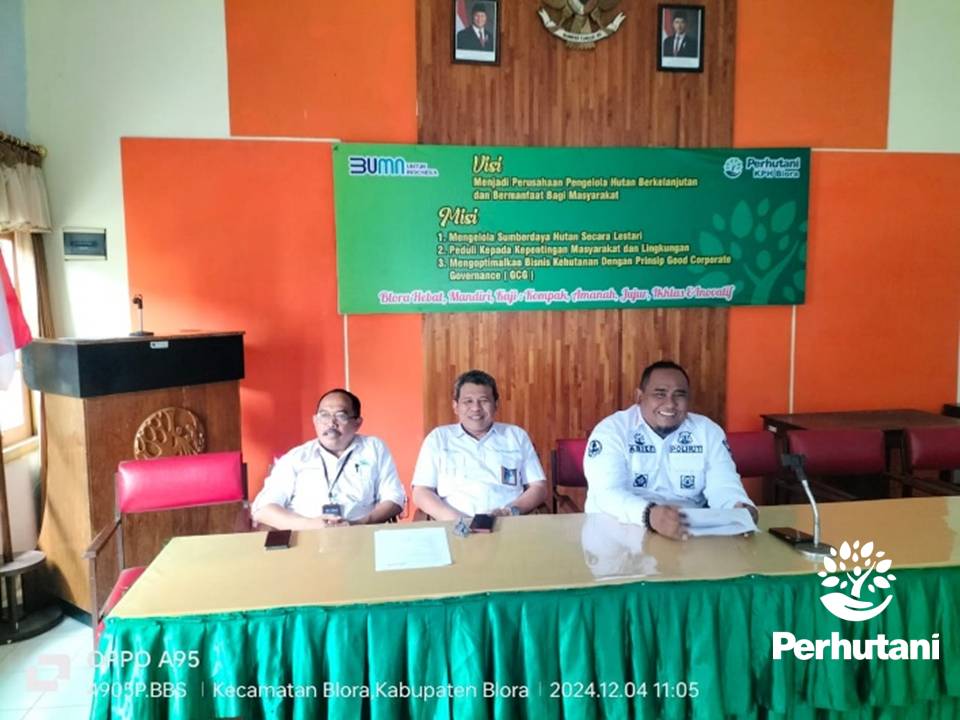 BLORA, PERHUTANI (04/12/2024) | Dalam rangka menyongsong Hari Jadi ke-275 Kabupaten Blora, Perhutani Kesatuan Pemangkuan Hutan (KPH) Blora memimpin Rapat Pemantapan Tim Penyelenggara Kirab Budaya sebagai pemantapan panitia atau team work di ruang rapat KPH Blora, Rabu (04/12).