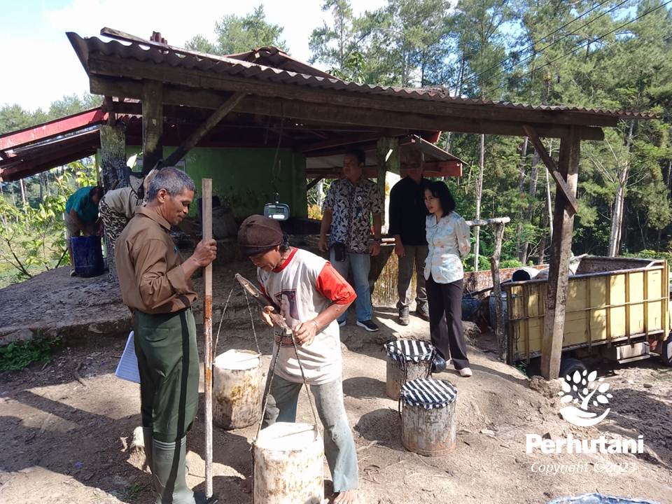 Selain meninjau pelaksanaan pembayaran non tunai di TPG Cihonje, Dirkeu Perhutani juga meninjau persemaian bibit pinus mercusi di BKPH Majenang dan Pabrik Getah dan Terpentin Cimanggu Majenang. (Kom-PHT/Byb/Eko)