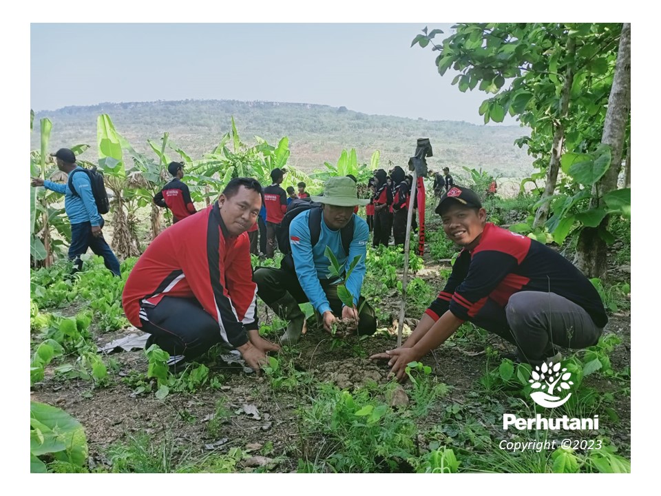 TUBAN, PERHUTANI (18/12/2023) | Bulan Menanam Pohon Nasional (BMPN) adalah momentum menghijaukan bumi, untuk itu Perum Perhutani Kesatuan Pemangkuan Hutan (KPH) Tuban, bersama jajaran TNI Kodim 0811, Badan Penanggulangan Bencana Daerah (BPBD) dan Komunitas off Road Kabupaten Tuban, melakukan kegiatan penanaman tidak kurang 300 plances bibit pohon Multy Purpose Trees Species (MPTS) seperti nangka, alpokat serta sejumlah tanaman keras lainnya beringin, trembesi, dll., yang dilaksanakan di area sumber mata air Sendang Pring, Petak 37, wilayah Resort Pemangkuan Hutan (RPH) Kareyan, Bagian Kesatuan Pemangkuan Hutan (BKPH) masuk wilayah Desa Dermawuh, Kecamatan Grabagan, Kabupaten Tuban, pada (18/12).