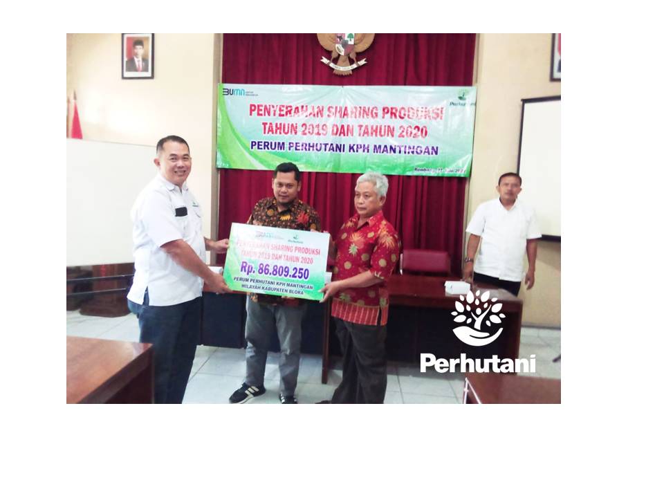 MANTINGAN, PERHUTANI (06/07/2022) | Perhutani Kesatuan Pemangkuan Hutan (KPH) Mantingan memberikan dana sharing produksi tahun 2019 dan 2020 kepada Lembaga Masyarakat Desa Hutan (LMDH) di wilayah Kabupaten Blora. Penerimaan dilakukan di kantor KPH Mantingan, Rabu (06/07).
