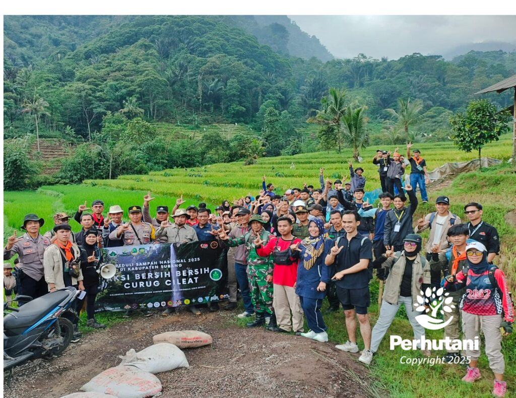 BANDUNG, PERHUTANI (25/02/2024) | Dalam rangka memperingati Hari Peduli Sampah Nasional (HPSN), Perum Perhutani Kesatuan Pemangkuan Hutan (KPH) Bandung Utara bersama Forum Koordinasi Pimpinan Kecamatan (Forkopimcam) Cisalak menggelar aksi bersih-bersih sampah di lokasi wisata Curug Cileat, Resort Pemangkuan Hutan (RPH) Bukanegara, Bagian Kesatuan Pemangkuan Hutan (BKPH) Cisalak, yang berada di Desa Mayang, Kecamatan Cisalak, pada Sabtu (22/02).