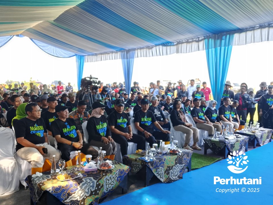 KENDAL, PERHUTANI (15/10/2025) | Perhutani Kesatuan Pemangkuan Hutan (KPH) Kendal turut berpartisipasi dalam aksi penanaman mangrove bertema “Mageri Segoro” yang digelar di Pantai Muara Kencana, Kabupaten Kendal, Jawa Tengah, pada Rabu (15/10). Kegiatan ini melibatkan sekitar 20.000 peserta yang secara serentak menanam mangrove di berbagai wilayah pesisir Jawa Tengah. Acara tersebut dihadiri langsung oleh Kepala Divisi Regional Jawa Tengah bersama Administratur KPH Kendal beserta jajaran, yang turut menanam pohon mangrove di lokasi yang telah disiapkan.