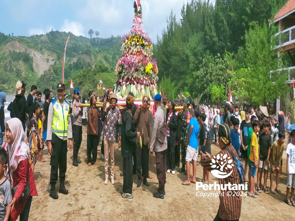KEDIRI, PERHUTANI (08/07/24) | Perum Perhutani Kesatuan Pemangkuan Hutan (KPH) Kediri turut hadir bersama para pemangku kepentingan dalam acara Sedekah Bumi yang digelar oleh Kelompok Sadar Wisata (Pokdarwis) Lejar Misuwur di lokasi Wisata Pantai Gemah, Resort Pemangkuan Hutan (RPH) Besuki, Bagian Kesatuan Pemangkuan Hutan (BKPH) Bandung, yang berada di wilayah administratif Desa Keboireng, Kecamatan Besuki, Kabupaten Tulungagung, pada Minggu (07/07).
