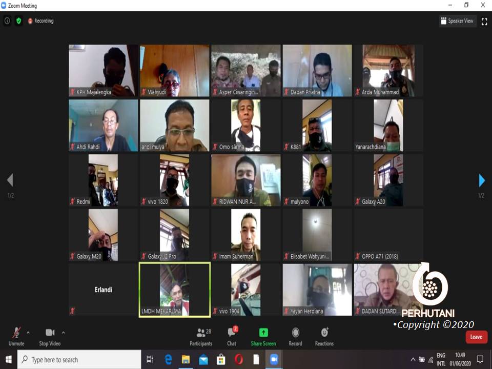 MAJALENGKA, PERHUTANI (3/6/2020) | Perhutani Kesatuan Pemangkuan Hutan (KPH) Majalengka melakukan sosialisasi protokol penanganan Covid-19 melalui video conference yang dilaksanakan pada Senin (1/6).