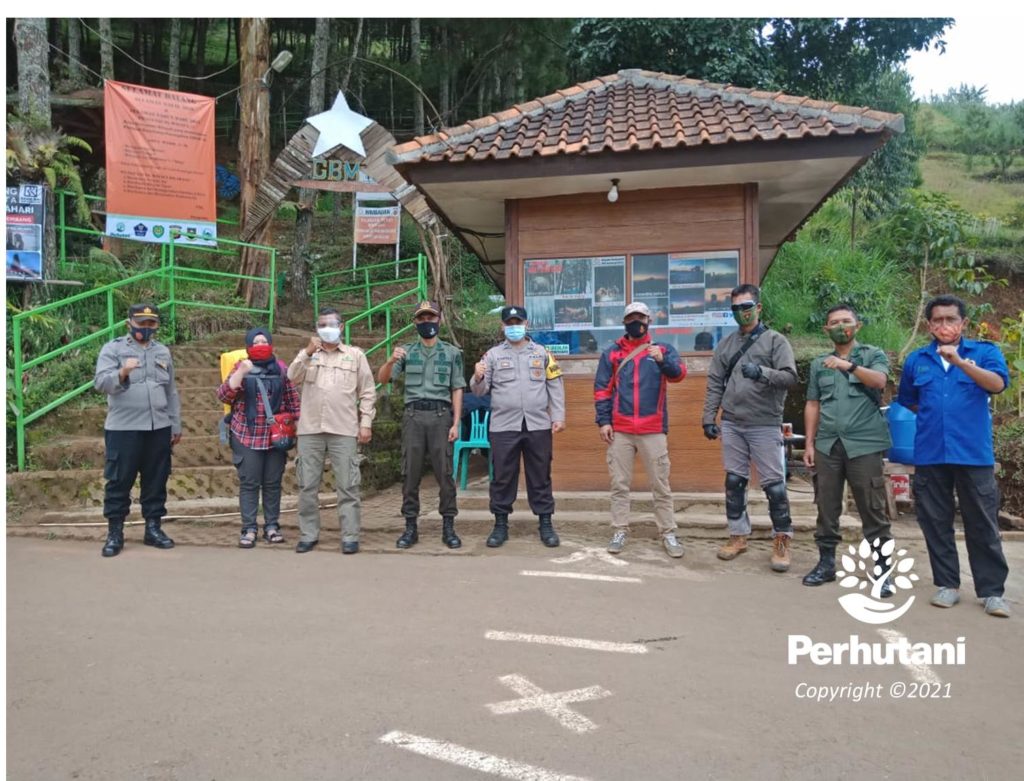 BANDUNG UTARA, PERHUTANI (17/01/2021) Pastikan penerapan protokol kesehatan, tim satgas covid-19 Kabupaten Bandung Barat datang mengunjungi Perhutani Kesatuan Pemangkuan Hutan (KPH) Bandung Utara di wisata Geger Bintang Matahari (GBM), Sabtu (16/1).