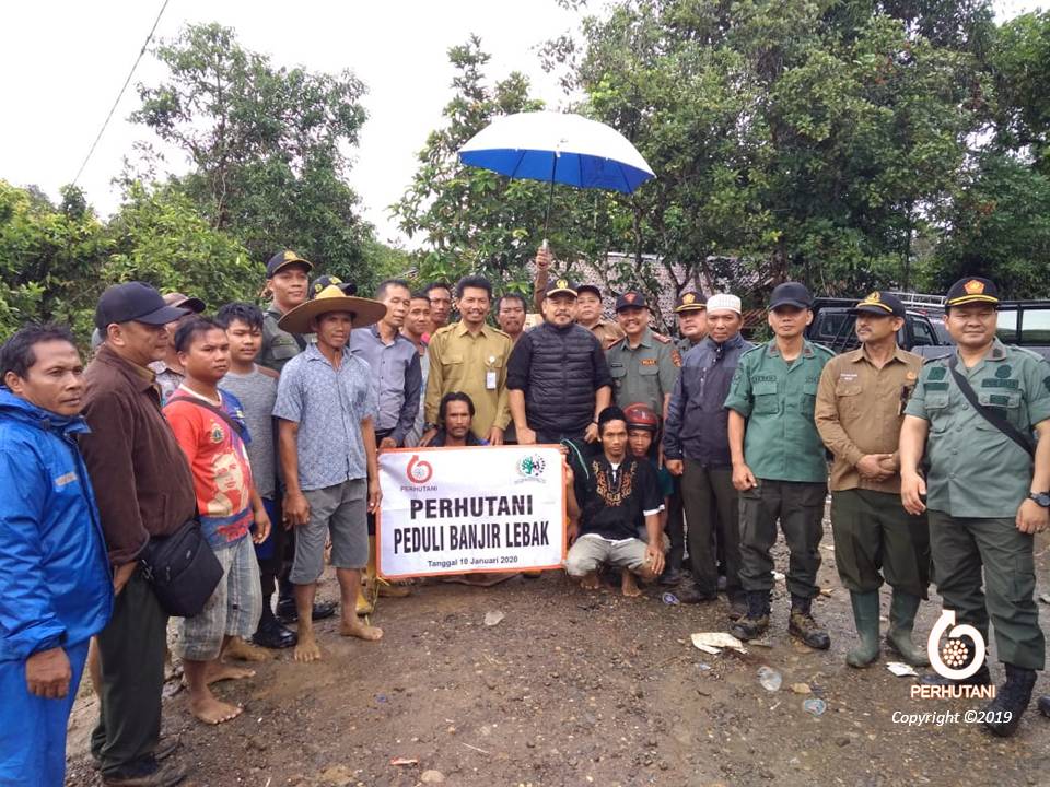 BANTEN, PERHUTANI (11/01/2020) | Perhutani Kesatuan Pemangkuan (KPH) Banten menyalurkan bantuan untuk korban musibah bencana banjir bandang dan tanah longsor di Kabupaten Lebak, Jumat (10/01). Penyerahan dilakukan langsung oleh Administratur KPH Banten Isnin Soiban untuk wilayah yang terkena dampak cukup berat yaitu Kecamatan Sajira dan Cimarga.