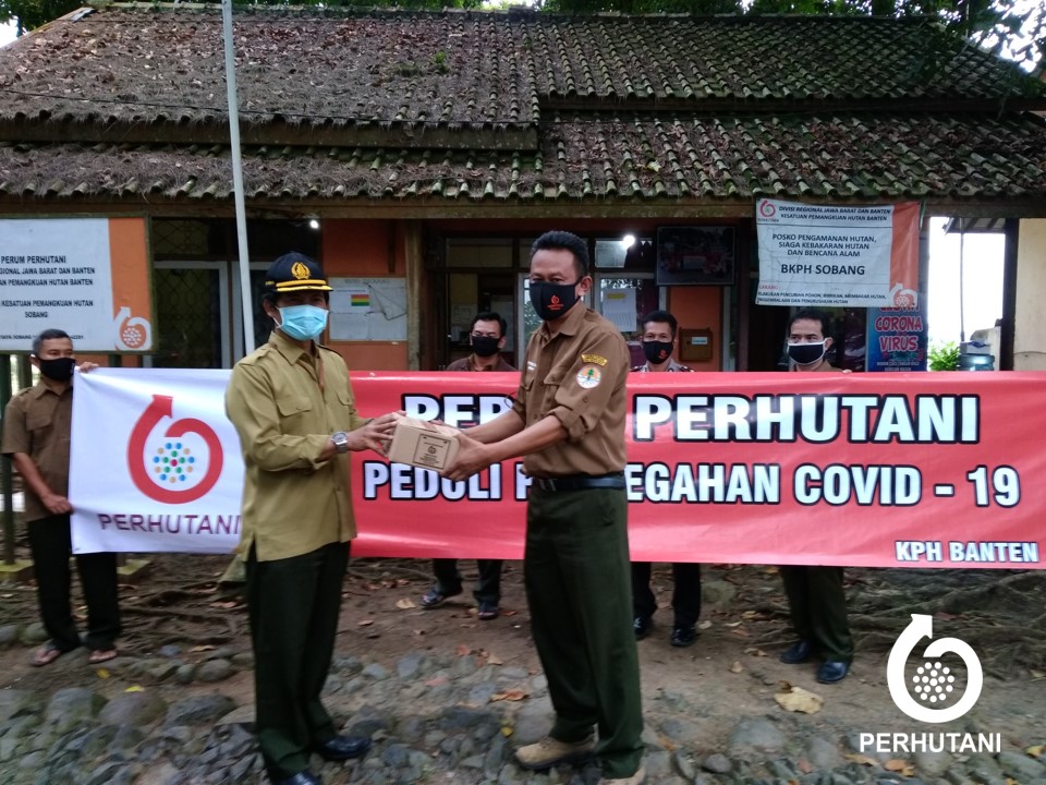BANTEN, PERHUTANI (05/05/2020) | Dalam rangka melindungi karyawan dan pekerja hutan dari wabah Covid-19, Perhutani Kesatuan Pemangkuan Hutan (KPH) Banten membagikan suplemen berupa madu murni Perhutani dan masker kepada perwakilan karyawan dan pekerja hutan di kantor Bagian Kesatuan Pemangkuan Hutan (BKPH) Sobang, Selasa (05/05). Pemberian ini diserahkan langsung oleh Administratur KPH Banten Isnin Soiban.