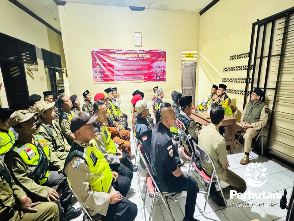 PEKALONGAN BARAT, PERHUTANI (02/01/2026) | Perhutani Kesatuan Pemangkuan Hutan (KPH) Pekalongan Barat melalui Bagian Kesatuan Pemangkuan Hutan (BKPH) Paguyangan turut bersinergi dengan para pemangku kepentingan dengan mengikuti Apel Pengamanan Tahun Baru 2026. Kegiatan ini dilaksanakan dalam rangka memastikan keamanan dan ketertiban masyarakat pada malam pergantian Tahun Baru 2026. Apel Gabungan Kesiapan Pengamanan tersebut digelar oleh Kepolisian Sektor (Polsek) Paguyangan dan bertempat di Markas Polsek Paguyangan pada Rabu malam (31/12/2025).