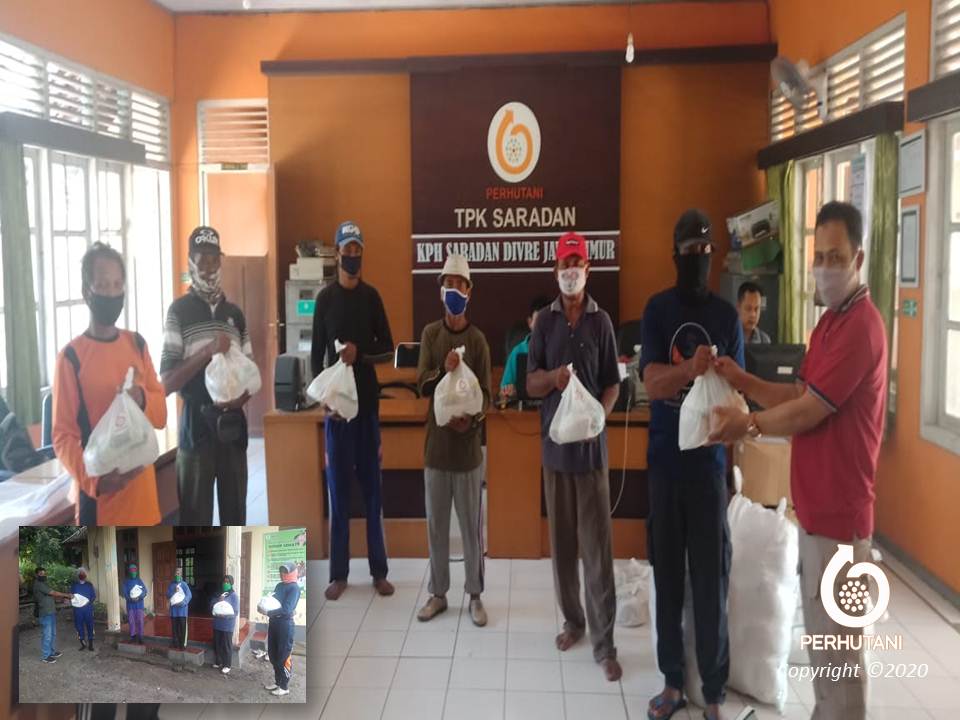 SARADAN, PERHUTANI (22/05/2020) | Sebagai wujud kepedulian terhadap pekerja hutan yang membantu pekerjaaan Perhutani dibidang kayu dan non kayu, Perhutani Kesatuan Pemangkuan Hutan (KPH) Saradan membagikan bingkisan lebaran kepada mereka yang terdampak Covid-19, Jumat (22/05).