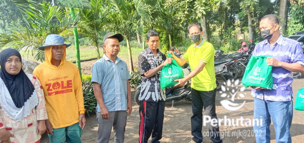 MOJOKERTO, PERHUTANI (29/04/2022) | Jelang lebaran, Perhutani Kesatuan Pemangkuan Hutan (KPH) Mojokerto bagikan sembako kepada tenaga kerja di persemaian petak 77B wilayah Resort Pemangkuan Hutan (RPH) Kupang, Bagian Kesatuan Pemangkuan Hutan( BKPH ) Kemlagi, Jum’at (29/04).