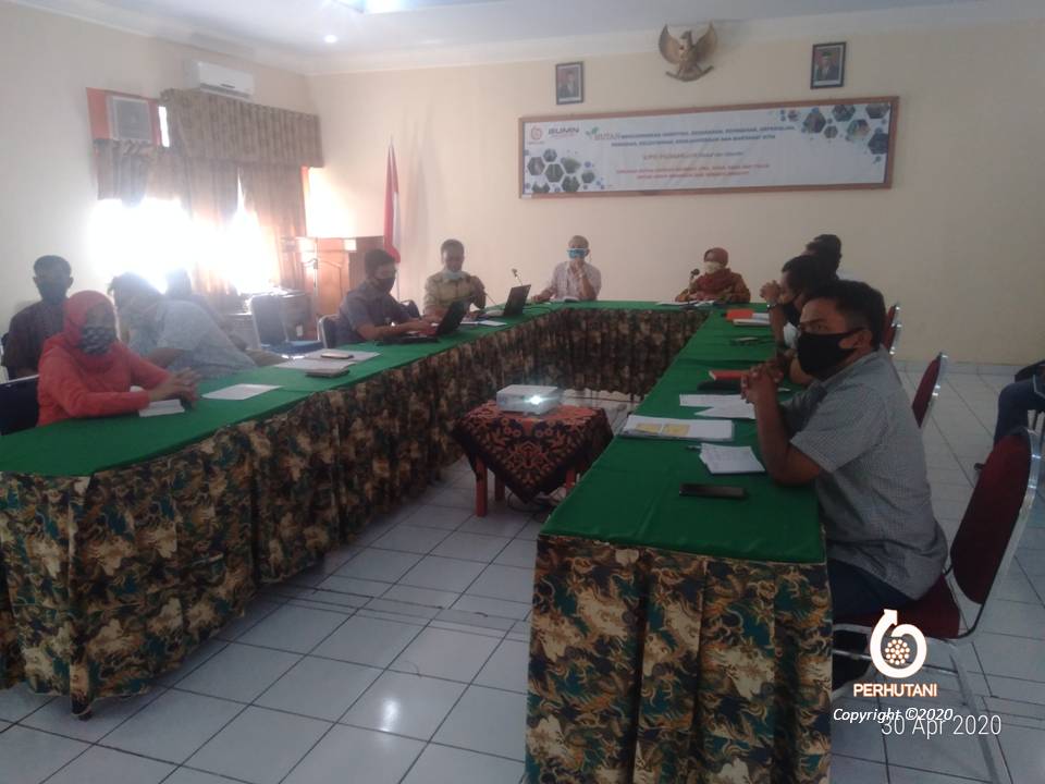 PADANGAN, PERHUTANI (03/05/2020) | Perhutani Kesatuan Pemangkuan Hutan (KPH) Padangan melakukan pertemuan dengan PTPN XI membahas tindak lanjut hasil kesepakatan terkait pemanfaatan lahan agroforestry tanaman tebu di lahan Perhutani wilayah Bagian Kesatuan Pemangkuan Hutan (BKPH) Tegaron yang dilaksanakan di Kantor Perhutani KPH Padangan pada Sabtu (02/05).