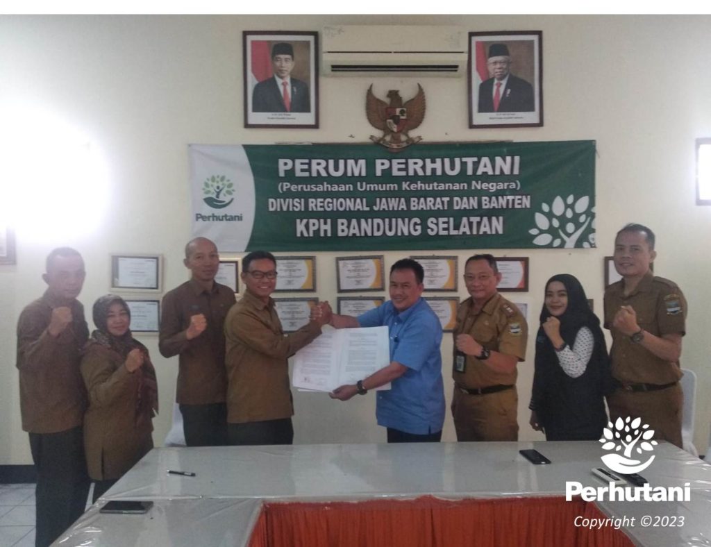 BANDUNG, PERHUTANI (18/04/2023)  |  Perhutani Kesatuan Pemangkuan Hutan (KPH) Bandung Selatan bersama Dinas Kebudayaan dan Pariwisata Kabupaten Bandung Barat Pemkab Bandung Barat tanda tangani Perjanjian Kerja Sama untuk kegiatan wisata Curug Malela yang berlokasi di Bagian Kesatuan Pemangkuan Hutan (BKPH) Gunung Halu termasuk wilayah administratif pemerintahan desa Cicadas kecamatan Rongga kabupaten Bandung Barat bertempat di aula Perhutani Bandung Selatan. Selasa (18/04).
