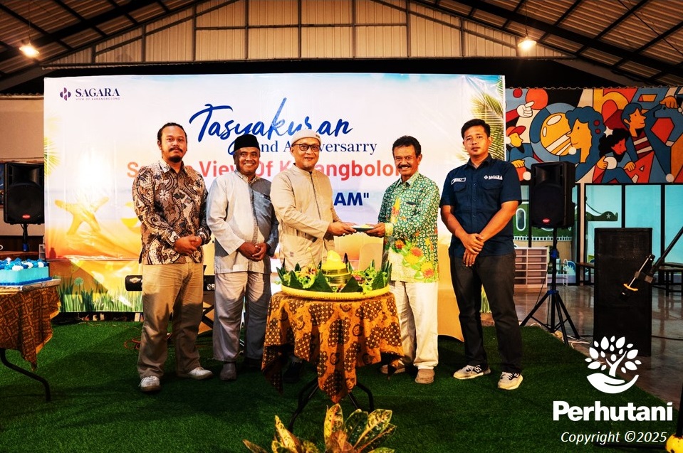 Administratur KPH Kedu Selatan, Nandang Kusnandar, bersama manajemen dan Kepala Seksi Madya Pembinaan Sumber Daya Hutan (SDH), Koko Winarko, menyampaikan ucapan selamat ulang tahun kepada Sagara View of Karang Bolong.