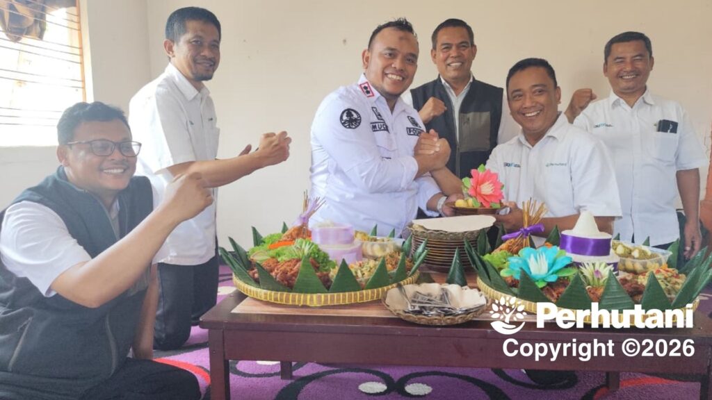 BANYUWANGI BARAT, PERHUTANI (10/01/2026) | Perhutani Kesatuan Pemangkuan Hutan (KPH) Banyuwangi Barat menggelar syukuran dan pemotongan tumpeng sebagai bentuk ungkapan syukur atas nikmat yang telah diberikan Allah SWT, sekaligus sebagai permohonan doa agar pekerjaan tahun 2026 berjalan lancar dan diberi kemudahan. Kegiatan berlangsung di Rumah Dinas Asisten Perhutani (Asper) Rogojampi, Jalan Bolodewo Dusun Kebalenlor Desa Lemahbangdewo Kecamatan Rogojampi Kabupaten Banyuwangi, pada Rabu (07/01).