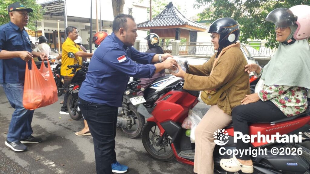 BANYUWANGI BARAT, PERHUTANI (17/01/2026) | Perhutani Kesatuan Pemangkuan Hutan (KPH) Banyuwangi Barat memperingati hari lahir (Harlah) Serikat Karyawan (Sekar) Perhutani yang ke 21 dengan membagikan ratusan paket makanan bergizi kepada masyarakat disekitar kantor Perhutani dan pengendara kendaraan yang melintas didepan kantor Perhutani di Banyuwangi, pada Kamis (15/01).