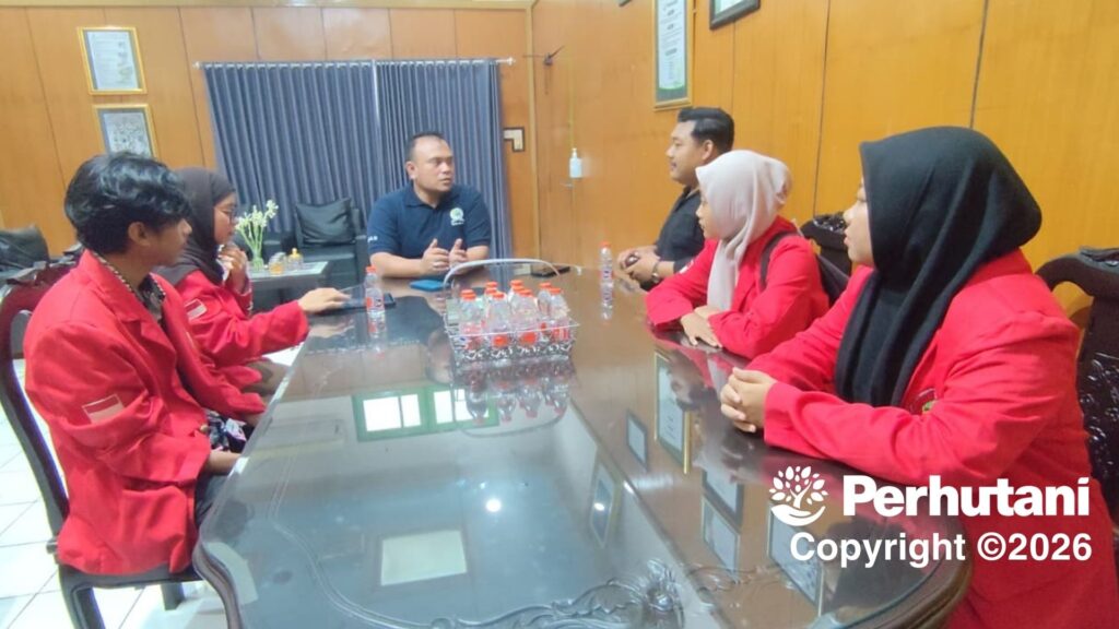 BANYUWANGI BARAT, PERHUTANI (21/01/2026) | Perhutani Kesatuan Pemangkuan Hutan (KPH) Banyuwangi Barat menerima audiensi Panitia Seminar Internasional bersama Dewan Pimpinan Cabang (DPC) Gerakan Mahasiswa Nasional Indonesia (GMNI) Banyuwangi serta Badan Eksekutif Mahasiswa Fakultas Pertanian dan Perikanan (BEM-FPP) Universitas 17 Agustus 1945 (Untag 45) Banyuwangi. Pertemuan berlangsung di ruang kerja Administratur KPH Banyuwangi Barat, pada Kamis (15/01).